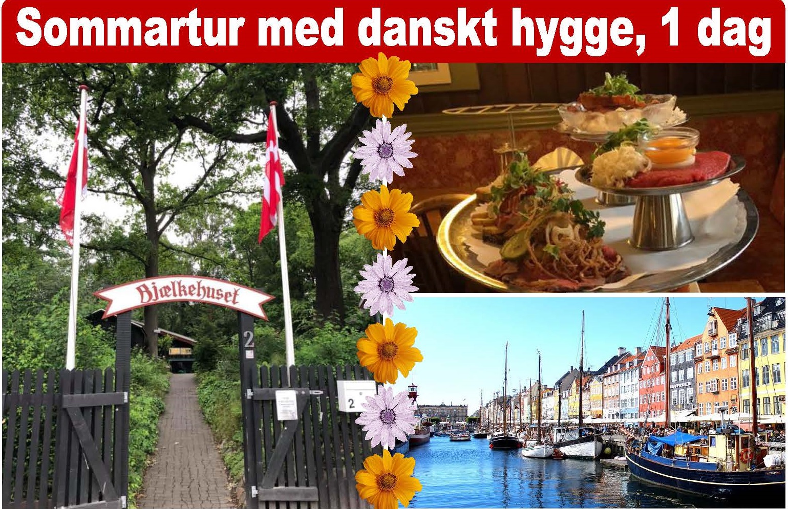 Följ med oss på en härlig sommartur till Köpenhamn. På välkända Restaurang Bjaelkehuset njuter vi av en ”dansk frukost” (lunch) och ett glas öl/vin eller läsk i anrik miljö. Det blir även tid att strosa runt på egen hand i hjärtat av Köpenhamn.